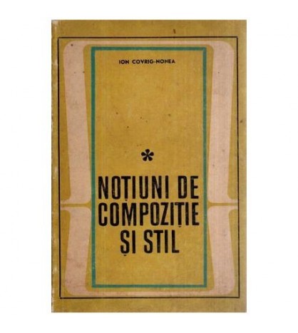 Draga cititorule, pentru astazi iti oferim spre lectura cartea cu titlul Notiuni de compozitie si stil scrisa de celebrul autor Ion Covrig Nonea la editura didactica si pedagogica, cu un pret simbolic de doar 12.00 RON, carte aparuta in anul 1970 in limba romana cu un numar total de 211 de pagini, starea cartii este in regim anticariat, Brosata, stare buna. Anticariat Albert va invita sa plasati o comanda si va doreste multa sanatate in aceste vremuri de cumpana
